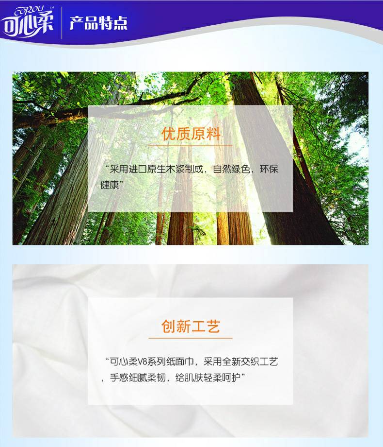 可心柔 V8系列CoRou云柔系列白色木浆60抽